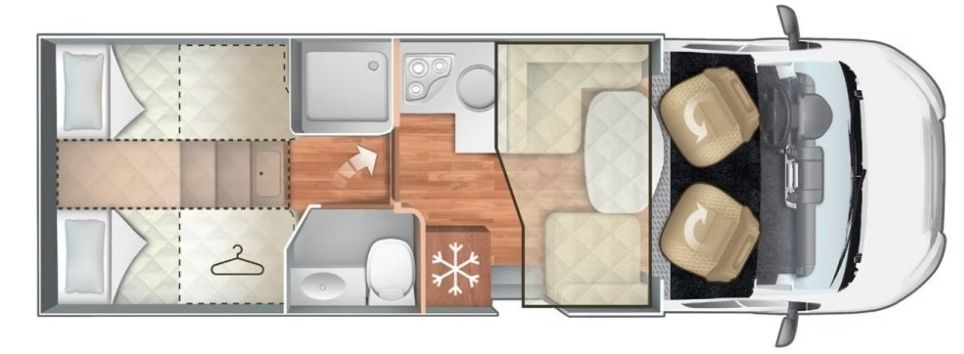 La Roller Team Kronos 284 TL es una autocaravana perfilada espaciosa y moderna, perfecta para viajar en familia o con amigos. Con capacidad para 5 personas, combina camas gemelas convertibles en gran dormitorio, una cama abatible eléctrica y un salón acogedor. Equipada con cocina completa, baño con ducha independiente, amplio garaje y tecnología de última generación, ofrece todo el confort y la libertad que necesitas para disfrutar de la carretera como en tu propio hogar.